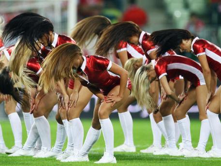 Cheerleaders providing entertainment at the Germany vs. Poland soccer friendly ahead of next years european championchips.