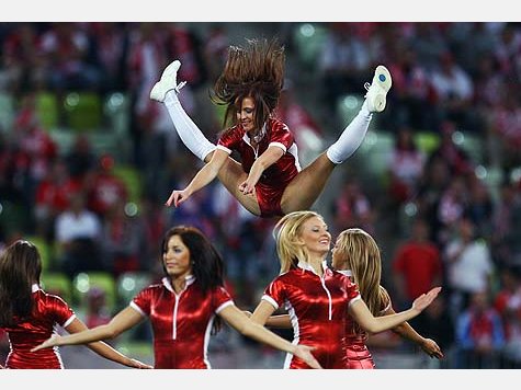 Cheerleaders providing entertainment at the Germany vs. Poland soccer friendly ahead of next years european championchips.