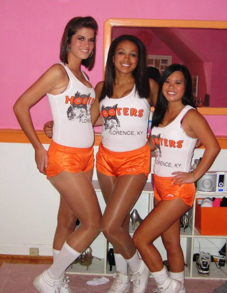 I LOVE HOOTERGIRLs IN THEIR SHINY PANTYHOSE in SKIN TIGHT spandex shorts!!!!