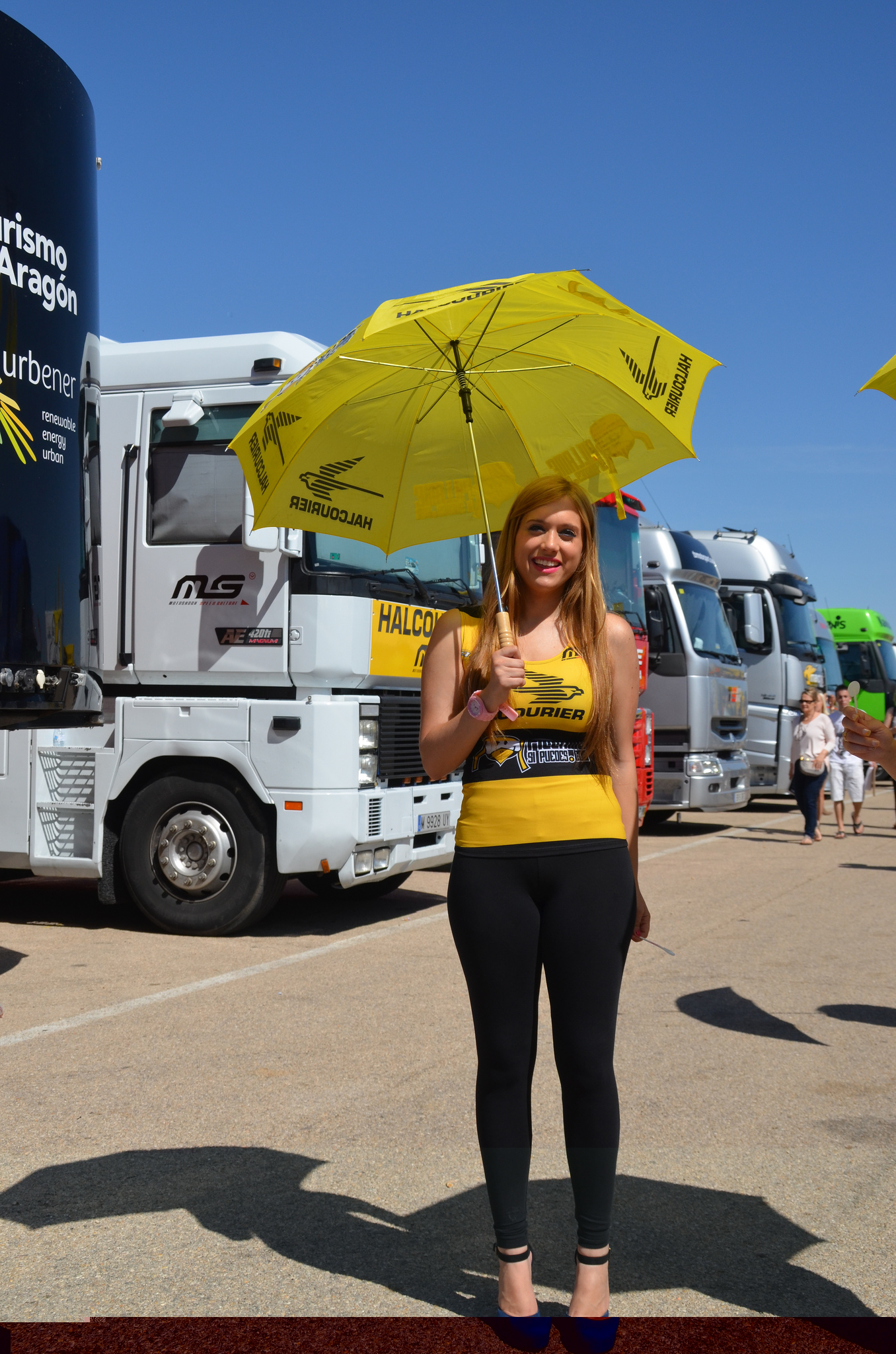 note the girlwatching in the background as she is posing for the camera