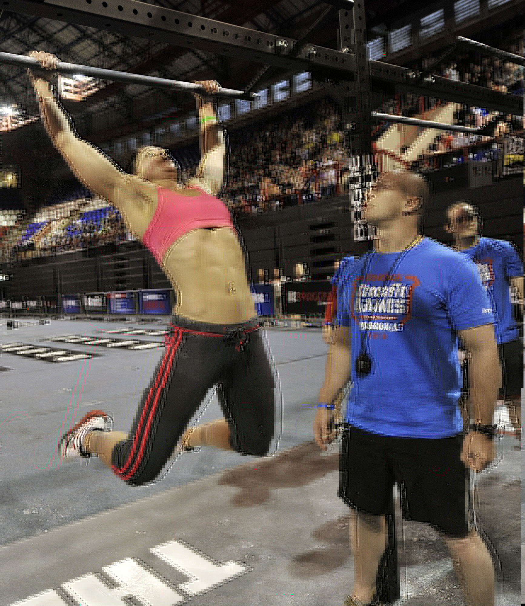 large hosted photo depicts a judge at a crossfit games competition; most judges themselves are also crossfit participants and you can be assured that that is one tight rock hard ass
