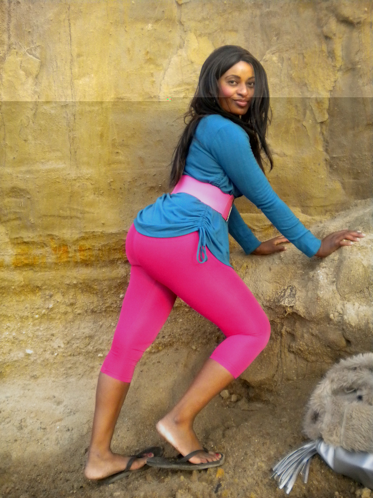 She is pull UP her black leggings because she LOVES to wear them SUPER SKIN TIGHT!