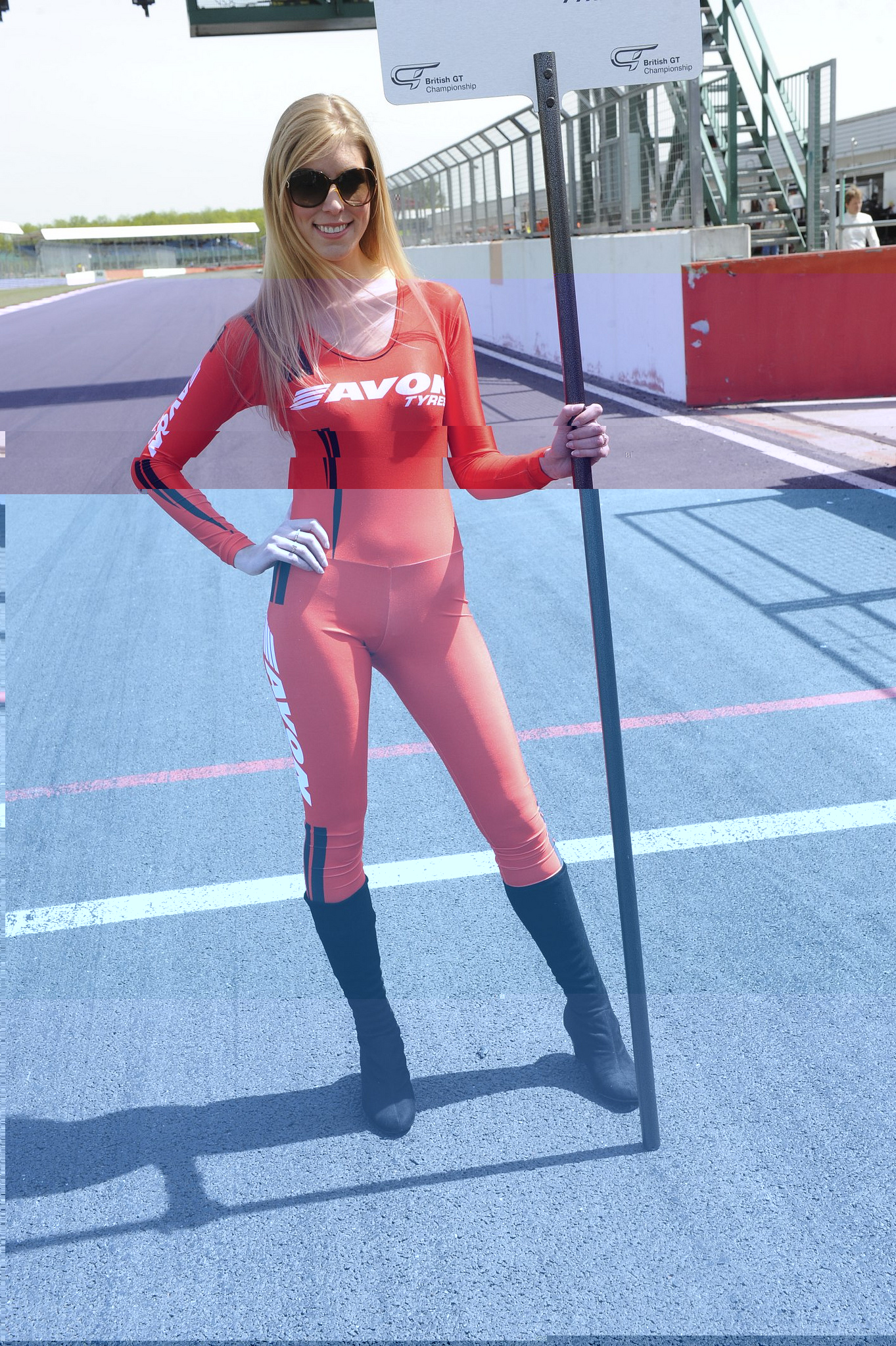 note the girlwatching in the background as she is posing for the camera