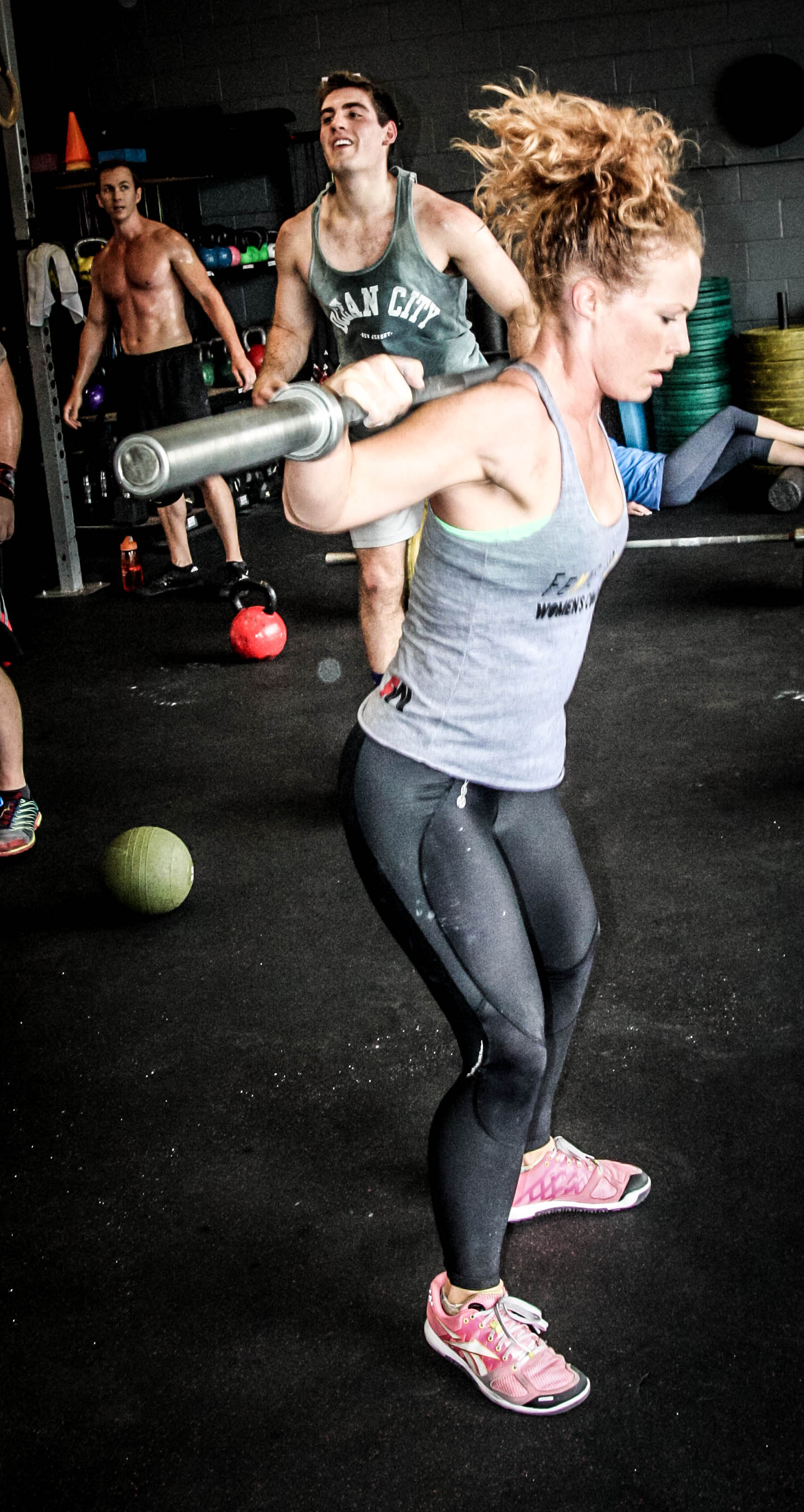 more of the crossfit training....strong healthy women note the girlwatching by fellow members...