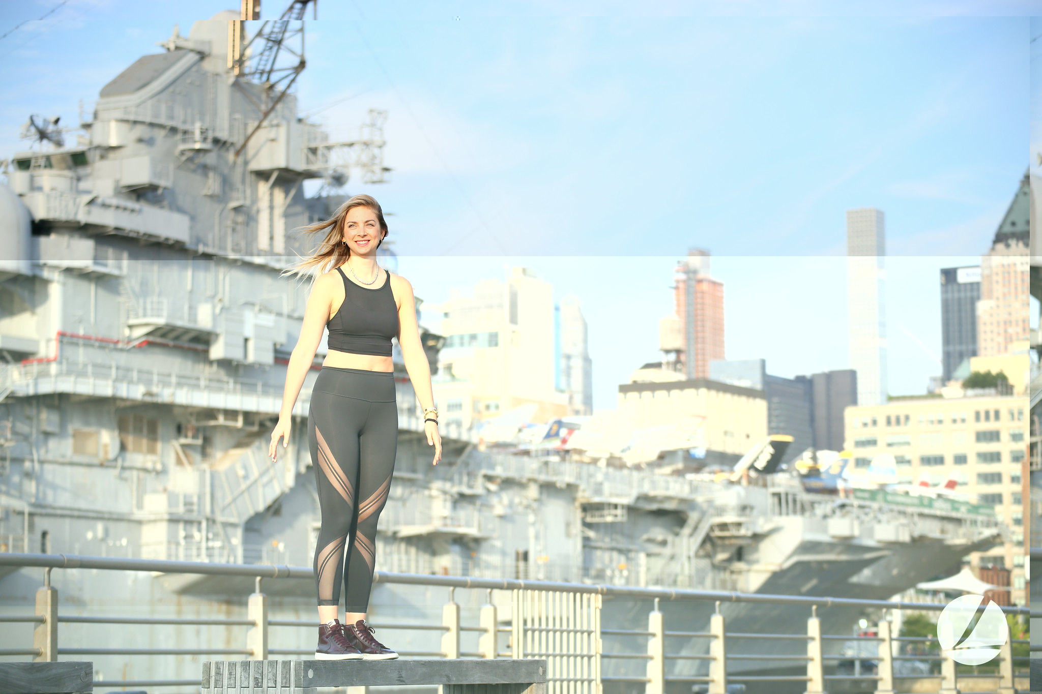 pier84 the intrepid as background. I remember being sent from my employer in the '90s to a apparel show in the javitts convention center. i went a couple of days earlier to spend some time with my sister who lives there and show me around.