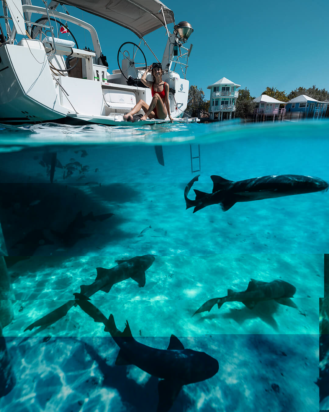 jess...when i saw this photo it reminded me of too many of the real life shows like dateline and 24 hours where the husband attempts to collect on his wife's life insurance to remarry a mistress or other woman and somehow he has to make it look like an accident...well in this case my wife loves snorkeling and i ordered her to get in the water but she refuses when she sees these nurse sharks circling underwater....LOL....women arent as dumb as you think they are; thats for sure...SHE WONT GO INTO THE WATER; DAMNT IT!!!!