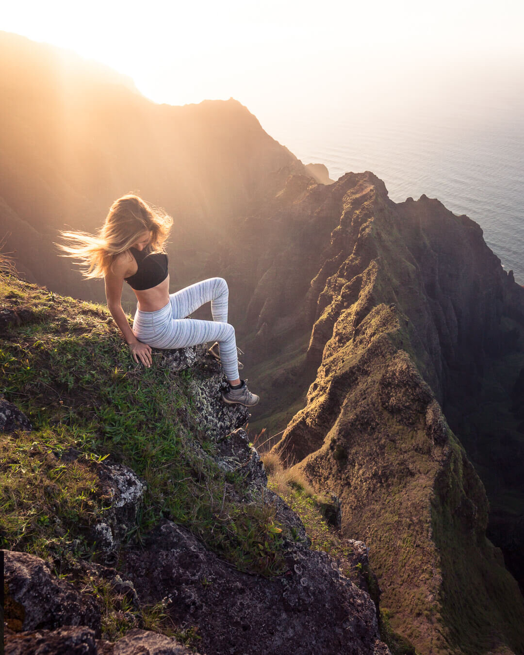 Kauai has a ton of amazing ridge hikes along the Na Pali Coast.<br /><br />just a brief comment on the previous photo; she has been to those bolivian salt flats before and that particular photo may or may not have been taken before the 'escape' back before the world-wide travel bans...now you see a photo sometimes like this one and you say its a gal in a swimsuit at the edge of a pool and dont pay too much attention she doesnt have a great figure to be in a swimsuit and yet sometimes you dont realize the work/effort or how remote a destination to get a photo like this.....was.....at the end of the day; none of that matters but these things go totally unnoticed most of the time....7th photo above shows her squatted in leggings at that bolivian salt flats more at her blog...