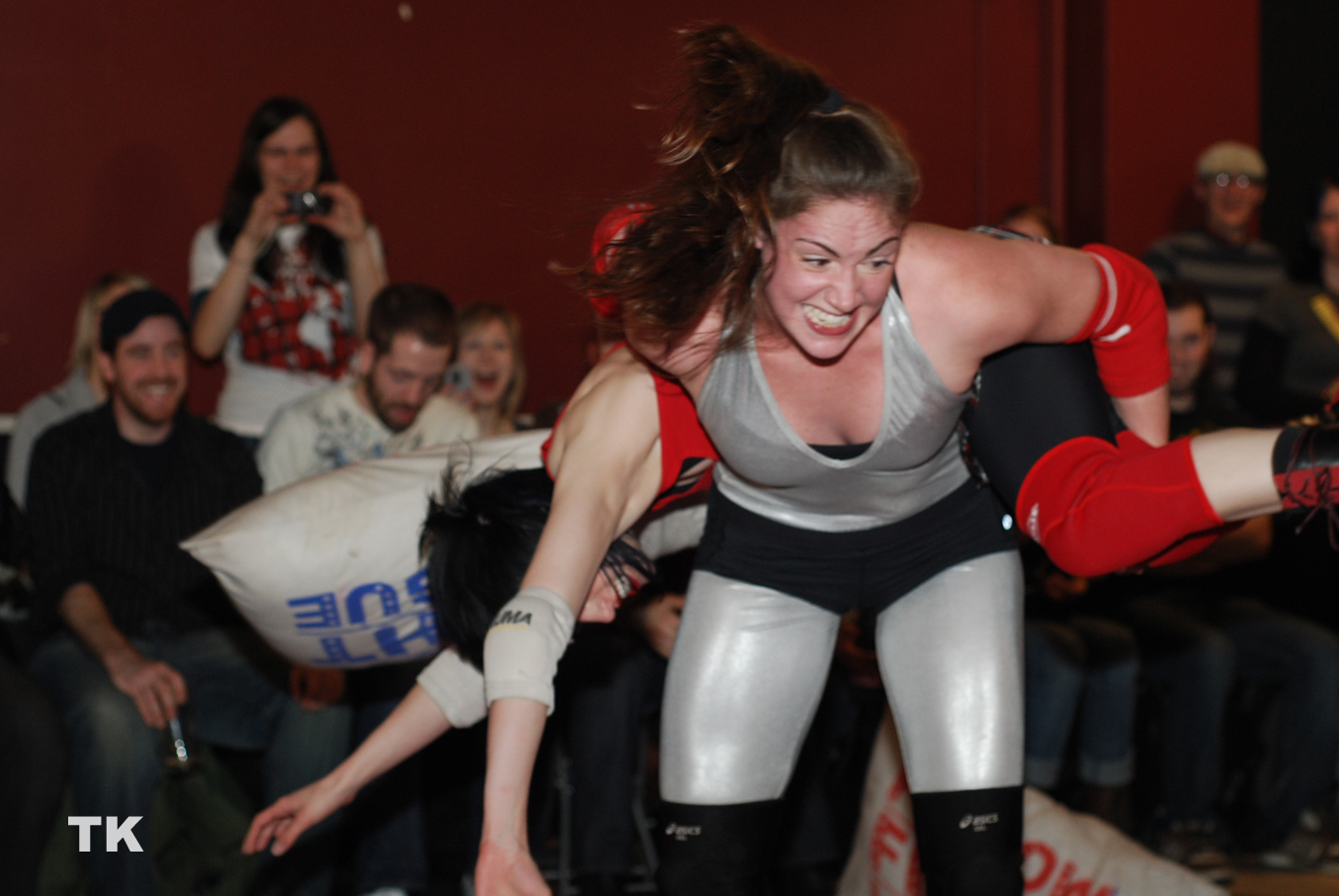 Check out this girl's spandex unitard... I don't even think that's a wrestling outfit she's wearing.