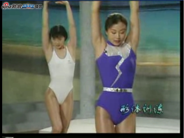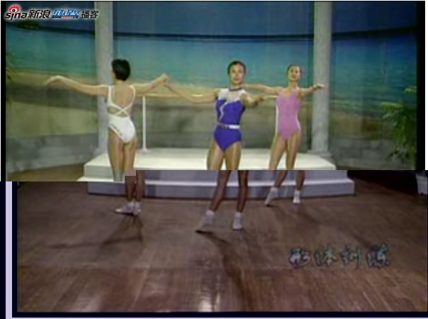 Check out the instructor in this clip, wearing the black and white stripe leotard: