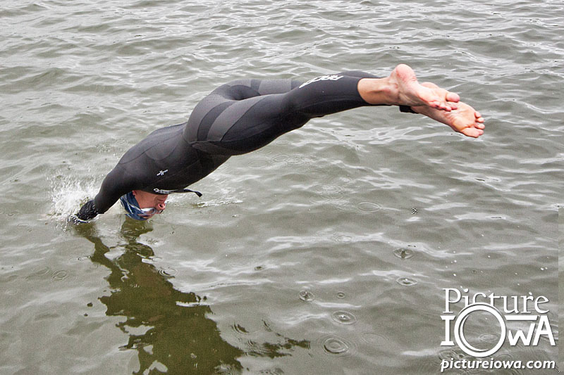 This hosted photo at a subaru triathlon depicts a guide for the swim portion...she is not a starter: