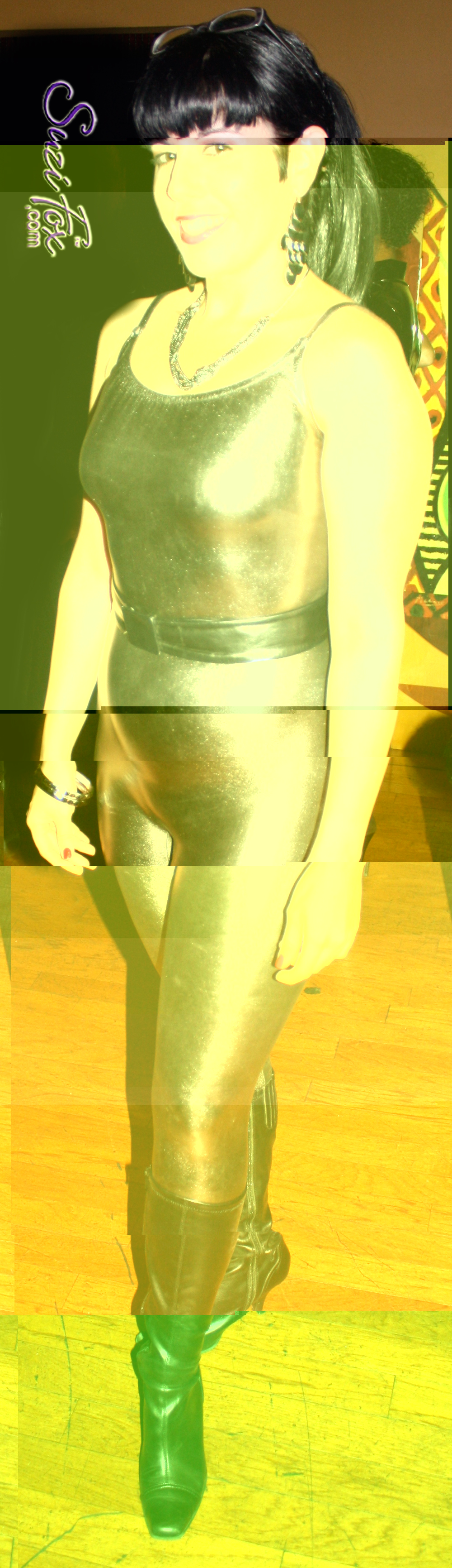 Custom Made to your measurements, Women's & Men's Sexy, Skin Tight Stretch Vinyl, Metallic, Foil, Rubber-Look, Spandex, Wet Look (Cire') Nylon Lycra, Milliskin, and Holographic fabrics. We custom make Catsuits, Dresses, Leggings, Pants, Shorts, Shirts, Skirts, Jackets, Vests, Night Club Wear, Dancer, Theater, Tradeshow Model Clothing, Vegas Entertainer Clothing, Costumes, & Swimwear. Suzi Fox brand Custom Designs - Just tell us what you want! All made in the U.S.A. and found at http://www.LiquidVinylClothing.com. [catsuits run $200-250...looks like this is the maker of a lot of those movies that feature actresses in tight catsuits...