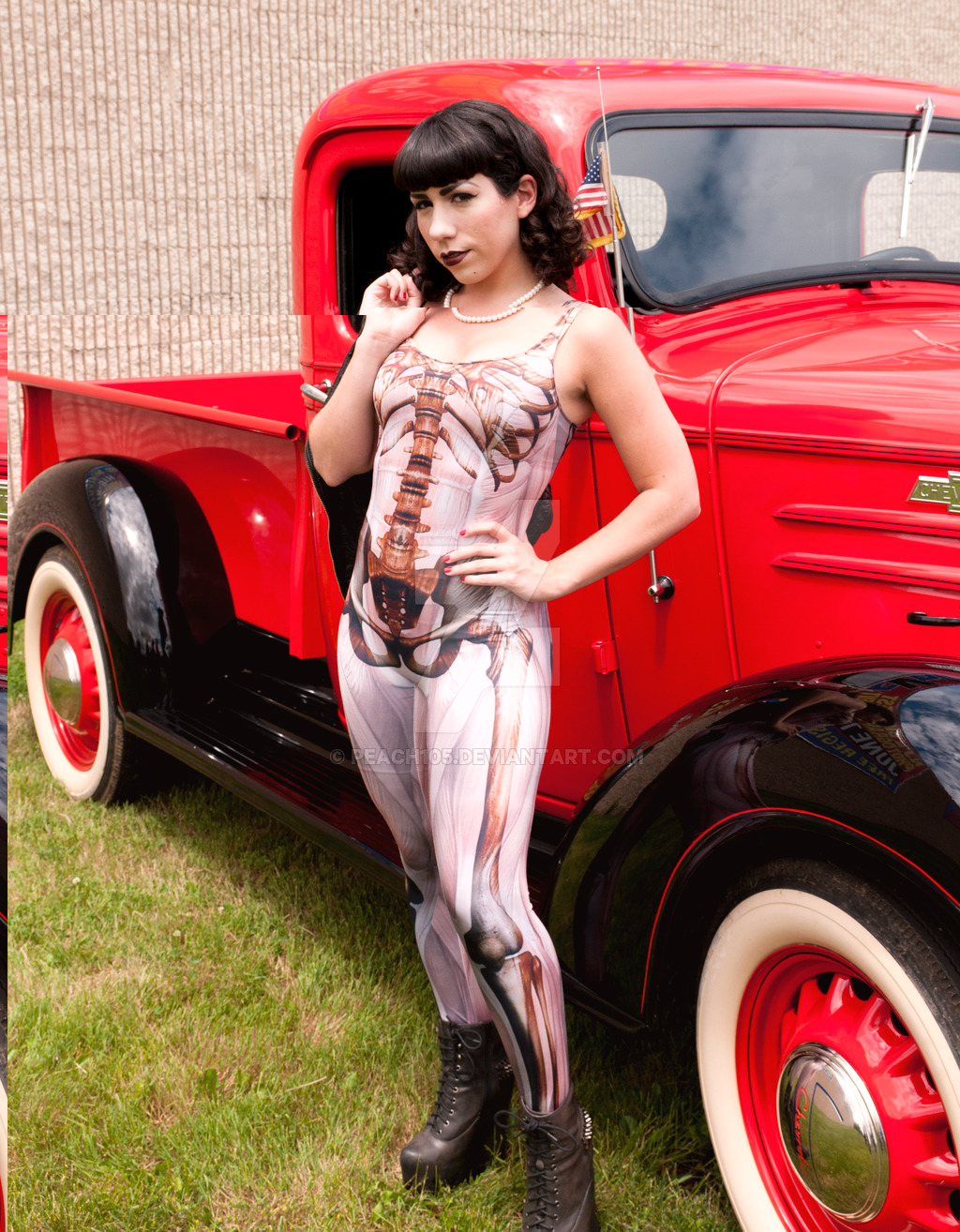 Great Pose of her in a black one piece suit.